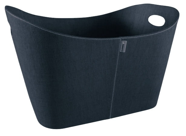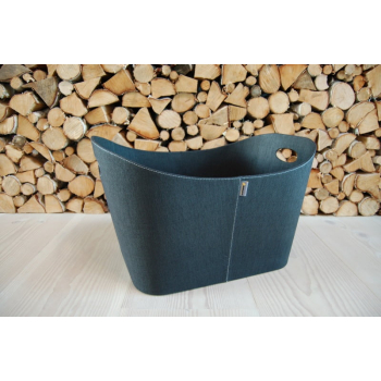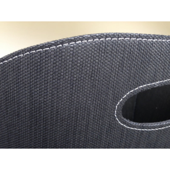 Interiérový koš na palivo potažený černou pevnou látkou s bílým prošíváním po obvodu.