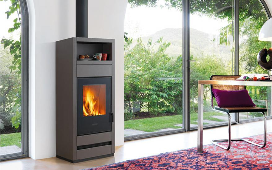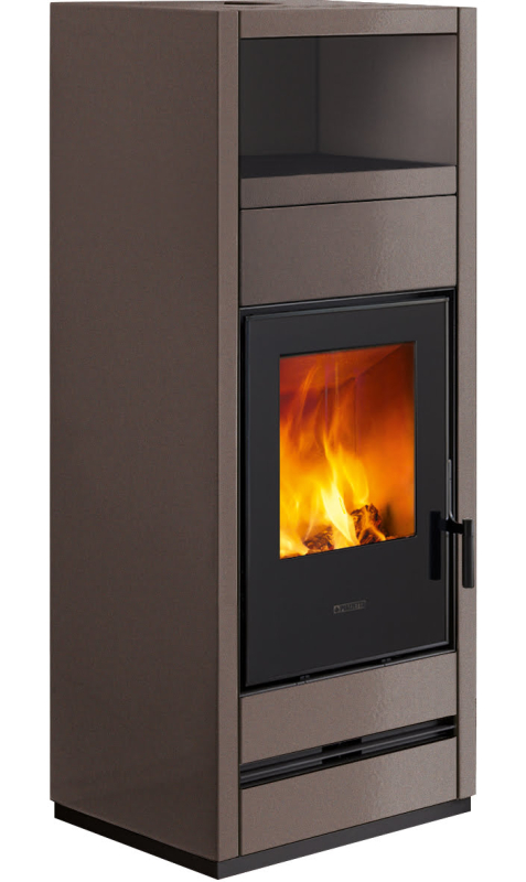 Kamna s neobvyklým designem včetně praktického ohřívacího prostoru v horní části. Kompletně obložená masivní keramikou nabízenou v barvách: Bianco, Nero Opaco, Rosso Lava a Terra Cotta. K dispozici také ve vzduchotěsné verzi se spalovacím vzduchem nasávaným z exteriéru případně se systémem BCS (automatická regulace hoření).