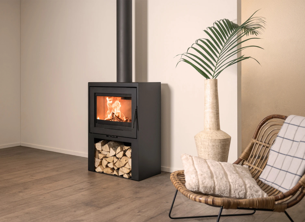 Krbová kamna teplovzdušná Wanders WAN 2075 BE High s dřevníkem
