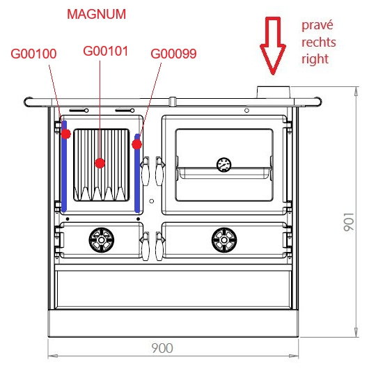 MBS - náhradní litinový díl do topeniště - díl zadní - MAGNUM provedení pravé - G00101