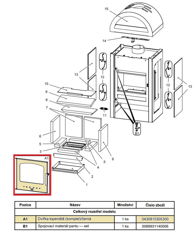 V technickém listě jsou kamna nebo krb rozkresleny do detailu a všechny díly jsou očíslované a s kódy, podle kterých je možné udělat objednávku přes náš eshop.