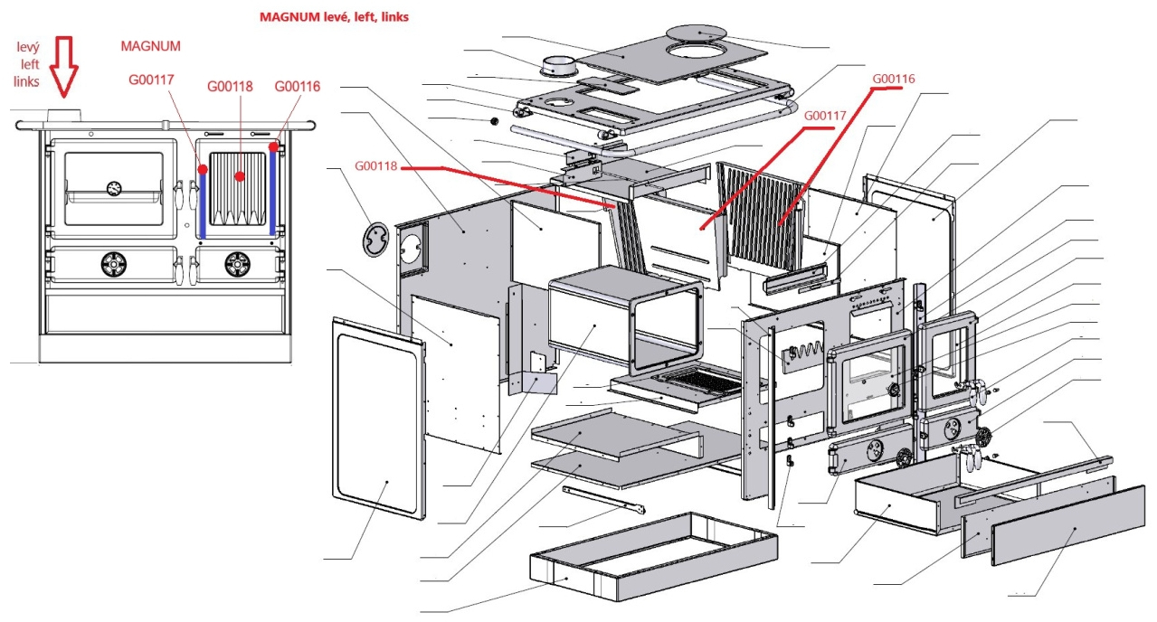 MBS - náhradní litinový díl do topeniště - díl levý - MAGNUM provedení levé - G00117