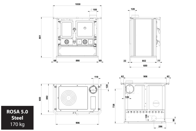 Sporák teplovzdušný La Nordica Rosa Steel, Rosa Steel - černá antracit